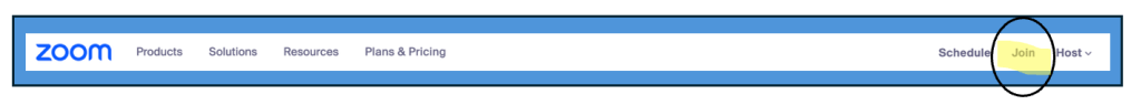 - From the menu bar at the top of the page, click ‘Join,’ then enter the ‘Meeting ID’ provided to you (e.g. in an email, calendar invite, or course syllabus).