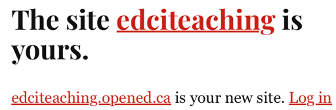 Example – if you chose ‘edciteaching’ as your site domain, you would go to https://edciteaching.opened.ca/admin.