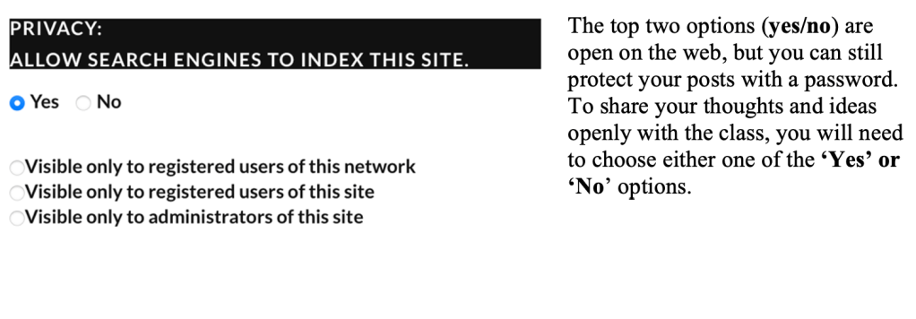 Choose certain ‘Privacy’ settings that match your comfort level regarding who can view your site.