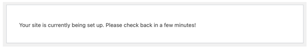 This message means your OpenETC site is still being created. The setup process is usually quick, but in some cases, it may take up to a few hours or even a couple of days. If your site is still not accessible after three days, please contact your course instructor or lab instructor for support.