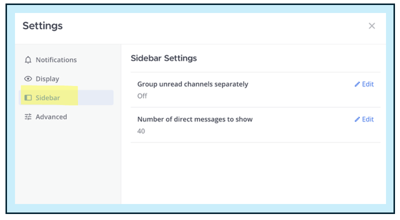 - You can then do the same for Display, Sidebar, and Advanced settings, which are all options on the left-hand side of the settings menu.