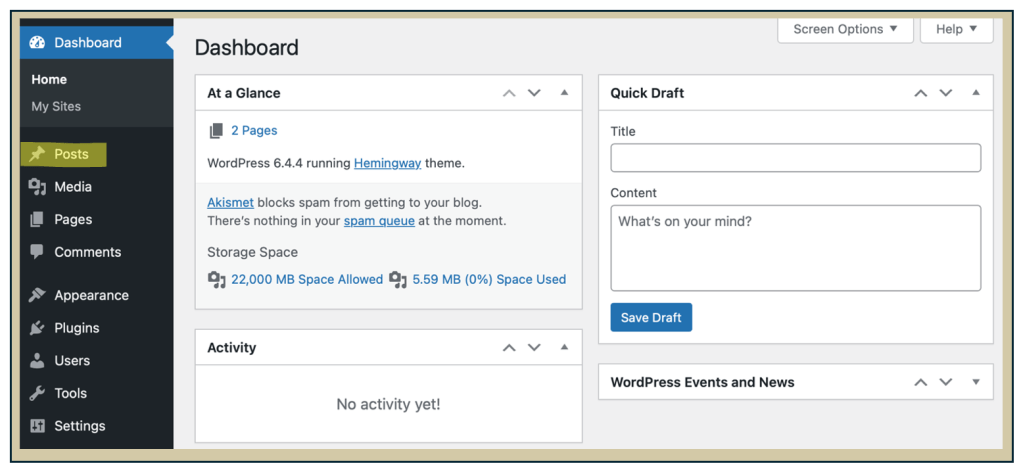 Important: Cleaning up default or sample posts helps make your blog feel more personalized and professional. Removing template content ensures that your site reflects your voice, your work, and avoids the generic feel of an unfinished site.