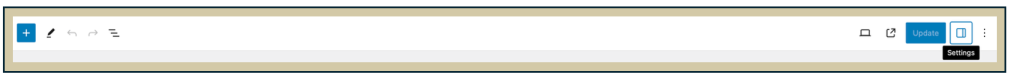 Key Term: The Settings icon opens the Settings panel, which will be referred to as your settings moving forward. Make sure this panel is open—it allows you to categorize posts, edit page details, and apply the customizations required for your course.