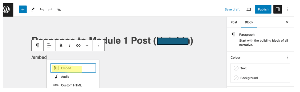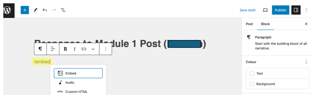 - If you have the correct URL, it will embed as shown below. You can then put your response in here.