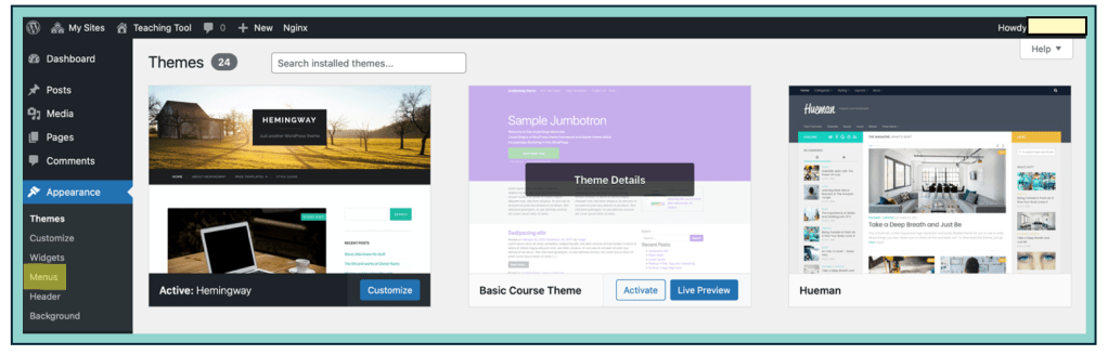 - Once you’ve added all the categories you need for your course(s), click on Appearance in the left-hand menu to continue customizing how your site is organized.