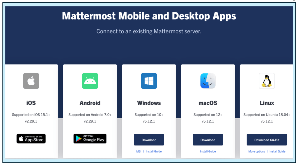 The first thing you will need to do is download the Mattermost application. If you are on a phone, go to your device’s app store. If you are on a desktop, you’ll need to download it from the internet using the Mattermost website.